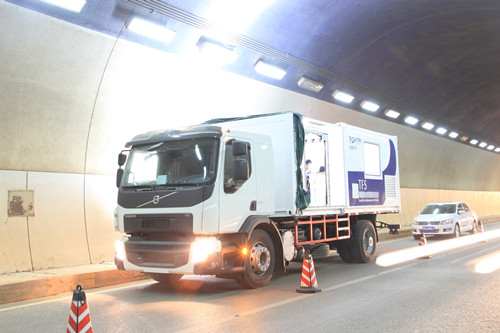 目前,该检测车已在武汉黄龙山隧道进行多次数据采集,实验结果证明,其完全满足检测的各项技术需求。该检测车的问世,也成功解决了目前隧道检测的速度、精度和安全问题,填补了国内市场空白。
