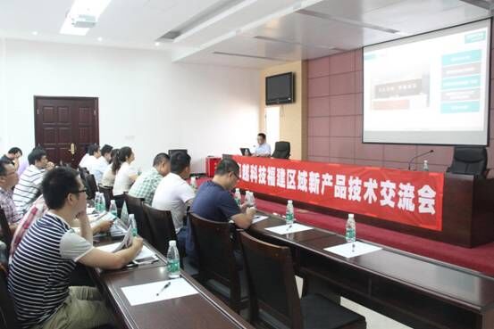 图为新闻发布会现场曹民先生为客户进行产品讲解