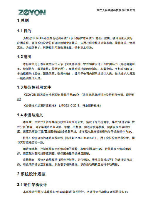 当道路病害识别需精准到毫米级、设施巡查要覆盖全路段、检测数据需支撑科研与养护决策 ——“ZOYON - 路况综合检测系统标准” 应需而生。